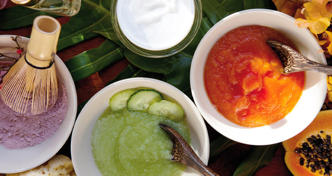 Körperpackung mit Tonerde und Ananas- oder Gurken-Mousse – Wünschen Sie sich die intensive Körperpflege zur Verbesserung Ihres Hautbildes durch die sanfte Wirkung wertvoller Mineralien und Vitamine als natürliche Bestandteile von Tonerde, belebend abgerundet von frischer Ananas- oder Gurken-Mousse? Efeu, Menthol und Kampfer aktivieren und entschlacken das Gewebe, kalt gepresstes Avocado-Öl liefert wichtige Nährstoffe. Das Ergebnis ist ein sichtbar verfeinertes und gestrafftes Hautrelief.